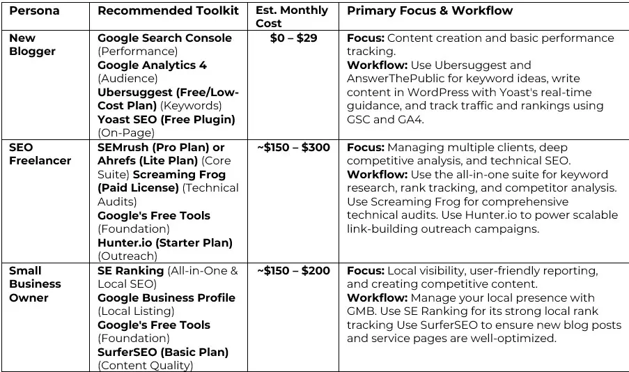 To make this guide as actionable as possible, we have curated three recommended toolkits based on common user personas. These stacks combine different tools to create a cost-effective and powerful solution tailored to specific needs and workflows.